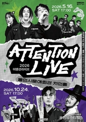 (중앙뉴스타임스 = 이광운 기자) 용인문화재단은 용인시문예회관 처인홀에서 청년층을 주요 대상으로 한 라이브 공연 브랜드 '2026 어텐션 라이브'를 상·하반기 두 차례에 걸쳐 개최한다. '어텐션 라이브'는 2021년부터 이어져 온 용인문화재단의 라이브 공연 프로그램으로, 다양한 장르의 아티스트가 참여해 시민들의 꾸준한 관심을 받아왔다. 특히 라이브 음악 중심의 공연을 통해 청년층의 공연 관심도를 증가시키고, 지역 공연 관객 저변을 넓히는 것을 목표로 운영되고 있다. 오는 5월 16일 열리는 '2026 어텐션 라이브Ⅰ'에서는 레게와 감성 발라드, 밴드 사운드가 어우러진 라이브 공연이 펼쳐진다. 레게 장르를 대표하는 스컬&하하, 감성 발라드 가수 별, 그리고 R&B·소울 기반의 밴드 사운드를 선보이는 설레게 밴드가 출연해 다채로운 무대를 선보일 예정이다. 스컬&하하는 2011년 MBC ‘무한도전’ 나름가수다 특집에서 박명수의 ‘바보에게 바보가’를 레게 풍으로 편곡한 무대를 선보이며 주목을 받았으며, 이후 ‘부산바캉스’, ‘Beautiful Girl’ 등으로 사랑받으며 한국 레게 음악을 대중적으로 알렸다. 가수 별은 ‘12월 32일’, ‘왜
