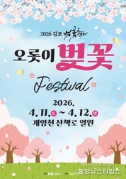 (중앙뉴스타임스 = 이광운 기자) 김포시가 오는 4월 11일부터 12일까지 김포 대표 벚꽃 명소인 계양천 산책로 일원에서 ‘2026 김포 벚꽃축제’를 개최한다고 19일 밝혔다. 이번 축제는 벚꽃을 찾는 시민과 방문객들이 여유롭게 봄을 만끽할 수 있도록 관람객 중심의 휴식형 프로그램으로 구성된 것이 특징이다. 축제 기간 계양천 일대에는 버스킹 공연과 다양한 포토존, 편안하게 머물 수 있는 벚꽃 쉼터 등이 마련돼 자연 속에서 휴식과 문학적 감성을 동시에 즐길 수 있을 것으로 기대된다. 특히 올해는 야간에도 벚꽃을 즐길 수 있도록 경관조명 구간을 약 200미터 연장 설치해 한층 깊어진 봄밤의 분위기를 선사할 계획이다. 또한 주요 관람 포인트에는 ‘인생샷 도우미(스태프)’를 곳곳에 배치해 방문객들이 소중한 추억을 편리하고 안전하게 남길 수 있도록 지원한다. 김포시 관계자는 “이번 축제는 화려한 행사 중심이 아닌 벚꽃 자체에 집중할 수 있도록 기획된 것이 특징”이라며, “계양천을 따라 펼쳐지는 벚꽃길에서 시민들이 온전히 봄을 느끼고 소중한 추억을 만들어 가시길 바란다”고 말했다. 한편, 원활한 행사 운영과 안전 확보를 위해 4월 10일 오전 10시부터 4월 12일 오