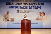 (중앙뉴스타임스 = 이광운 기자) 파주시는 지난 14일 파주시민회관 대공연장에서 ‘제29회 노인의 날 기념행사 및 세계보건기구(WHO) 인증 고령친화도시 선포식’을 성황리에 개최하고, 고령사회에 대응하는 파주시 복지정책 방향과 세대 간 공감의 문화를 확산하기 위한 뜻깊은 자리를 마련했다. 이번 행사는 김경일 파주시장을 비롯해 박대성 파주시의회 의장, 경기도 및 파주시의원, 노인 관련 유관기관장 등 400여 명이 참석해 시민 모두가 행복한 고령친화도시를 만들어가겠다는 의지를 다졌다. 이날 행사에서는 노인복지 유공자 54명에 대한 표창 수여와 함께 고령친화도시 선포, 축하공연 등이 이어져 풍성한 볼거리를 선사했다. 김경일 파주시장은 “파주시는 세계보건기구(WHO)로부터 고령친화도시로 공식 인증받은 것을 계기로, 어르신이 존중받고 시민 모두가 행복한 도시를 만들겠다”라며 “앞으로도 노인복지 증진과 세대 통합을 위한 다양한 정책 실현을 통해 파주시민 모두가 ‘파주에 살기를 참 잘했다’라고 말할 수 있도록 최선을 다하겠다”라고 밝혔다. 향후 파주시는 관내 노인 관련 유관단체와 적극 협력하여 어르신의 목소리에
