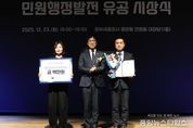 (중앙뉴스타임스 = 방재영 기자) 강원특별자치도는 행정안전부가 주관한 '2025년 국민행복민원실 인증평가'에서 우수기관으로 선정돼 행정안전부 장관 표창을 수상했다고 밝혔다. 국민행복민원실 인증은 민원실 환경과 서비스 수준을 종합적으로 평가해 수요자 중심의 민원 환경을 조성하기 위한 제도로, ㉠1차 서면심사와 ㉡2차 현지실사, 그리고 ㉢‘미스터리 쇼핑’ 방식의 현장 체험 평가 및 ㉣국민 만족도 전문기관 설문조사를 거쳐 최종 인증 기관을 선정한다. 강원특별자치도는 2019년 국민행복민원실 신규 인증 이후 두 번째 재인증을 받았으며, 신규 인증 이후 장관상을 수상한 것은 이번이 처음이다. 특히 올해는 도내 평가 대상 기관인 강원특별자치도교육청, 춘천시, 영월군이 모두 우수기관으로 선정되는 이례적인 성과를 거뒀다. 이로써 강원특별자치도는 도민 중심의 민원 행정을 한 단계 끌어올린 해로 평가받고 있다. 윤우영 강원특별자치도 행정국장은 “이번 수상은 도민과 가장 밀접한 민원 서비스를 개선하기 위해 지속적으로 노력해 온 결과”라며, “앞으로도 도민이 쉽고 편리하게 민원 서비스를 이용할 수 있도록 제도와 환경