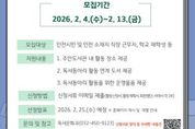 (중앙뉴스타임스 = 방재영 기자) 인천시교육청주안도서관은 지역주민의 자발적 독서문화 확산을 위해 오는 4일부터 ‘2026년 읽걷쓰 시민자율독서동아리’를 모집한다고 3일 밝혔다. 이번 모집은 시민이 주체가 되어 독서, 토론, 글쓰기 등 다양한 활동을 펼치는 동아리를 발굴·육성하기 위해 마련했으며, 선정된 동아리에는 활동을 위한 도서와 공간, 운영 물품을 지원하는 등 다양한 혜택을 제공할 예정이다. 모집에 대한 자세한 사항은 주안도서관 누리집을 확인하거나 독서문화과로 문의하면 된다.