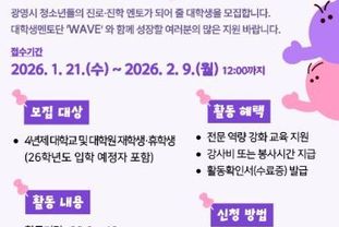 (중앙뉴스타임스 = 방재영 기자) 광명시가 어르신들의 학습권 보장과 디지털 격차 해소를 위해 ‘2026년 어르신 평생교육’ 사업을 수행할 보조사업자를 공개 모집한다. 이번 공모는 급변하는 사회 환경 속에서 어르신들이 소외되지 않도록 평생교육 기회를 제공해 삶의 질을 높이는 데 목적이 있다. 모집 대상은 관내 어르신 대상 문해교육(초·중등 학력인정, 한글교실, 검정고시 등)과 디지털 평생교육(컴퓨터, 스마트폰 등 디지털기기 활용교육)을 수행할 수 있는 역량을 갖춘 관내 비영리 기관, 법인, 단체 또는 평생교육법에 의해 인가·등록된 시설 및 평생직업교육학원 등이다. 최종 선정된 운영기관은 오는 3월부터 11월까지 해당 사업을 전담해 운영하게 된다. 접수는 오는 26일부터 30일까지 5일간 지방보조금관리시스템인 ‘보탬이(e)’에서 진행한다. 상세 내용과 신청 서식은 평생학습원 홈페이지 ‘광명이(e)지’에서 확인할 수 있다. 아울러 시는 참여를 희망하는 기관 및 단체의 이해를 돕기 위해 오는 22일 오후 5시 광명시 평생학습원 101호 강당에서 ‘2026년 광명시 평생학습 지원사업 설명회’를