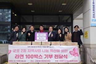 (중앙뉴스타임스 = 방재영 기자) 군포시는 지난 10일 군포교회에서 성탄절 및 연말을 맞아 라면 1,004박스를 기탁했다고 밝혔다. 군포교회는 매년 지역사회의 어려운 이웃을 위해 꾸준히 나눔과 사랑을 실천하고 있으며, 이번 연말 및 성탄절을 맞이하여 사랑과 희망의 메시지를 담은 ‘나눔의 선물’로 라면(20개입) 1,004박스를 기부했다. 김철웅 목사는 “성탄절은 나눔과 사랑을 실천하기에 가장 의미 있는 시기라며 긴 겨울을 지내기에 어려움이 있는 이웃에 온기를 전할 수 있어 기쁘다”고 전했다. 하은호 군포시장은 “군포교회의 따뜻한 나눔에 깊은 감사를 드리며, 기탁된 라면은 꼭 필요한 곳에 잘 전달하겠다”고 화답했다. 기탁받은 라면은 지역 내 종합사회복지관 4개소를 통해 통해 취약계층에 전달 할 예정이다.