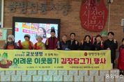 (중앙뉴스타임스 = 방재영 기자) 광명전통시장이 이웃 사랑을 실천하는 ‘김장 나눔 행사’를 열고 13년째 따뜻한 나눔을 이어가고 있다. 지난 16일 시장 내 고객쉼터에서 열린 행사에서 상인회원들은 정성껏 담근 김장김치 280포기를 관내 취약계층과 복지기관에 전달했다. 상인회 조합원과 여성회 회원 등 20여 명이 참여해 배추 손질부터 양념 버무리기, 포장까지 손수 진행했다. 완성한 김치는 독거노인 31가구와 광명·철산복지관, 다솜지역아동센터에 전달해 따뜻한 겨울나기를 도왔다. 광명전통시장 상인회는 매월 독거노인 대상 반찬 봉사를 꾸준히 이어오며, 김장철에는 김치를 직접 담가 전달하는 등 지역 돌봄 활동을 지속하고 있다. 올해 나눔은 교보생명 재단의 후원으로 재료비와 준비 지원을 받아 더욱 풍성하게 마련했다. 또한 이날 행사에는 트로트 가수 조주한이 출연해 ‘한량가’, ‘막걸리 한 잔’ 등 흥겨운 무대를 선보였다. 이항기 광명전통시장 이사장은 “추운 겨울을 앞두고 이웃들에게 작은 힘이 되길 바란다”며 “광명전통시장이 시민들에게 많은 사랑을 받는 만큼 우리 상인회도