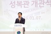 (중앙뉴스타임스 = 방재영 기자) 용인특례시는 7일 수지구 성복동 성복중학교에 실내체육관 ‘성복관’을 개관 했다고 밝혔다. 개관식에는 이상일 시장을 비롯해 용인교육지원청 관계자, 한기범 농구선수, 학교 관계자와 학부모 등 50여 명이 참석했다. 이상일 시장은 “지난 4일 포은아트홀에서 열린 용인특례시 시민프로축구단 용인FC 창단식에서 말씀드렸듯이 ‘미래는 그냥 오는 것이 아니라 우리가 함께 만들어 가는 것”이라며 “이러한 정신을 잘 보여준 표본이 ’성복관‘이라 생각한다”고 말했다. 이 시장은 “시가 교육부와 경기도교육청과 함께 힘과 지혜를 모아 ’성복관‘을 만들었듯이 우리가 정성을 모으면 학생들이 얼마든지 더 밝은 미래를 개척할 수 있다”며 “이 공간이 배움과 건강이 함께 자라는 장소가 되길 바란다”고 강조했다. 이 시장은 “학생들이 이곳에서 별처럼 아름다운 꿈을 키우고 스스로 행복한 마음으로 성장하길 기대한다”며 “시에서도 교육지원청과 긴밀히 협력해 학생들이 구김살 없이 밝게 자랄 수 있도록 응원하고 지원하겠다”고 말했다. 이 시장은 참석자들과 함께 테이프 커팅식을 진행하고, 한기범 선수와 함께하는 ‘희망 슛’ 퍼포먼스에 참여한 뒤 완공된 체육관 시설을 살