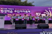 (중앙뉴스타임스 = 이광운 기자) 여주시 여흥동 주민자치회 통기타 팀이 지난 24일 여주시평생학습관 야외무대에서 열린 ‘제10회 여주시 평생학습·주민자치축제’에서 우수상을 수상하며 그동안의 실력을 인정받았다. 이번 행사는 여주시가 주최하고 여주시 평생교육과 주관하여 진행됐으며, 각 읍면동 주민자치 프로그램들이 한자리에 모여 공연·전시·체험 등 다양한 활동을 통해 평생학습과 주민자치의 성과를 공유하는 자리였다. 여흥동 주민자치회는 통기타반이 문화프로그램 경연대회에 참가해 완성도 높은 연주로 큰 박수를 받았으며, 작년도 최우수상 수상팀인 여흥동 다이어트댄스팀 ‘마이러브댄스’가 축하공연을 펼쳐 축제 분위기를 더욱 고조시켰다. 또한 초상화그리기팀과 가죽공예팀이 전시부스를 운영해 관람객들의 높은 관심을 끌었다. 김영완 여흥동장은 “주민자치 프로그램이 단순한 취미활동을 넘어 주민이 함께 참여하고 소통하는 의미 있는 공동체 활동으로 자리 잡고 있다”라며 “앞으로도 여흥동 주민자치회가 지역의 활력과 자치 역량을 높이는 중심이 될 수 있도록 적극 지원하겠다”라고 전했다.