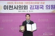 (중앙뉴스타임스 = 방재영 기자) 이천시의회 김재국 의원이 10일 경기도의회 대회의실에서 열린 '2025년 우수의정 행정대상’시상식에서 '2025년 우수의정 그랜드마스터상’을 수상하며, 이천시 발전과 사회적 약자 보호를 위해 펼쳐온 활발한 의정활동을 대내외적으로 인정받았다. 경기도일간기자단이 주최한 이번 수상은, 시민의 삶의 질 향상을 위한 확고한 소명의식을 바탕으로 민생 현장을 세심히 살피며 민생 중심의 의정활동에 기여한 우수 의원에게 수여된다. 김재국 의원은 이천시 전체의 균형 발전과 현안 해결을 의정활동의 최우선 과제로 삼고, 다양한 지역 현장을 직접 찾아 시민의 목소리를 청취해 정책과 조례에 적극 반영해 왔다. 특히 사회적 약자에 대한 각별한 관심을 바탕으로 발달장애인 복지 및 사회활동 보험 지원, 장애인가정 출산지원금 지원 등에 관한 조례를 발의해 이천시 장애인의 실질적 권익 보호와 생활 향상 기반을 마련했다. 이러한 입법 활동은 제도적 공백을 보완하고, 도움이 필요한 시민에게 신속하고 체계적인 지원이 이루어질 수 있는 기반을 마련했다는 점에서 높은 평가를 받고 있다. 또한 김 의원은 회기마다 적극적이고 날카로운 행정사무감사를 통해 집행부의 정책 집