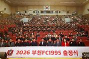 (중앙뉴스타임스 = 방재영 기자) 김병전 부천시의회 의장은 2월 22일, 부천시청 어울마당에서 열린 부천FC1995 시민프로축구단 2026시즌 출정식에 참석해 선수단을 격려했다. 이날 행사는 2026시즌 개막을 앞두고 1부 승격의 성과를 시민과 함께 공유하고, 새 시즌 각오를 다지기 위해 마련됐다. 김병전 의장은 “1부 승격 이후 맞는 첫 출정식이라는 점에서 의미가 남다르다”며 “선수들은 관중의 응원 속에서 더 큰 힘을 낸다. 많은 시민께서 경기장을 찾아 함께해 주시길 바란다”고 말했다. 이어 “저도 구단 회원으로서 홈경기를 직접 찾아 응원하겠다”며 “시민과 함께 만드는 응원 문화가 구단의 경쟁력을 높이고, 도시의 활력으로 이어질 것”이라고 강조했다.