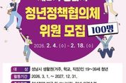 (중앙뉴스타임스 = 방재영 기자) 성남시는 오는 18일까지 ‘제3기 청년정책협의체’ 위원 100명을 공개 모집한다고 6일 밝혔다. 청년정책협의체는 지역 청년을 대표해 성남시에 청년정책을 제안하고 소통하는 청년 참여기구다. 제3기 협의체는 일자리·창업, 교육, 주거, 복지·문화 등 4개 분과로 구성된다. 선발되면 분과별로 △청년정책 의견 수렴과 정책 제안 △청년정책 모니터링 △청년정책 홍보 △ 청년의 날 기념 문화 행사 기획 등의 활동을 하게 된다. 제3기 협의체 활동 기간은 오는 3월부터 내년 말까지다. 시는 청년정책협의체 위원들이 정부의 제2차 청년정책 기본계획(2026~2030년)과 연계해 체계적인 정책 제안할 수 있도록 관련 정책 안내와 교육, 워크숍 등 활동의 장을 마련할 계획이다. 대면 회의에 참석한 위원에게는 참여 활동비 2만원을 지급하고, 우수 활동 위원에게는 연말 표창을 수여한다. 협의체 위원 참여 자격은 성남시에 거주하거나 지역 내 직장 또는 학교에 다니는 19~39세 청년이다. 시는 지원동기, 청년정책 관심도, 활동 경험 등을 서면으로 심사해 위원을 선발한다. 성남시 관계자는 “청년정책의 당사자인 청년들이 주체적으로 정책을 제안하고 시정에