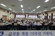 (중앙뉴스타임스 = 방재영 기자) 2026년 개청 10주년을 맞은 수원시 권선구 금곡동은 지난 6일 지역구 의원과 주민 등 100여 명이 참석한 가운데 주민자치회 및 통장협의회와 함께 10주년 기념행사를 개최했다. 금곡동 지역사회보장협의체, 새마을문고, 방위협의회, 수원시 자율방범대 칠보지대, 시립 금곡동어린이집에서도 행사를 후원했다. 이날 행사는 기념 떡케이크 컷팅, 10년간의 기록을 모아 만든 기념 동영상 시청, 지난 10년간의 경과보고, 주민자치회장과 통장협의회장의 환영사와 참석한 여러 내빈들의 축사 및 화합의 의미를 담은 비빔밥 식사 등으로 진행됐다. 특히 10주년 동영상에는 행정복지센터의 개청부터 서수원칠보체육관 및 칠보청소년청년센터의 개관을 포함한 금곡동의 외형적인 변화부터 경로잔치, 대표 축제인 어울림마당 등이 담겨 그동안의 변화를 한눈에 볼 수 있는 뜻깊은 경험이었다. 장성임 금곡동장은 “주민분들과 함께한 10년을 기념하고, 앞으로 금곡동의 100년 미래를 준비하기 위해 본 행사를 기획했다. 열정적으로 같이 행사를 준비해준 단체장님들 및 주민 여러분들에게 정말 감사드린다. 주민들과 화합 단결하여 거주 만족도 최고의 동이 되도록 최선을 다하겠다.