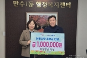 (중앙뉴스타임스 = 방재영 기자) 인천 남동구 만수1동 행정복지센터는 이상정 전(前) 만수1동장(현 인천시 공무원)이 퇴직을 앞두고 이웃사랑 후원금 100만 원을 전달했다고 22일 밝혔다. 이번 후원은 이 전 동장이 과거 만수1동 행정복지센터에서 3년 6개월간 동장으로 근무하며 주민들로부터 받은 따뜻한 정과 도움에 대한 감사의 마음을 전하고자 이뤄졌다. 이상정 전 만수1동장은 “추운 겨울 소외된 이웃들에게 따뜻한 마음을 전하고자 기부하게 됐다”며 “앞으로도 봉사와 기부를 통해 지역사회를 위한 나눔을 꾸준히 실천하겠다”라고 말했다. 황현숙 동장은 “지역사회를 향한 따뜻한 관심과 실천에 깊이 감사드린다”라며, “이번 이웃사랑 후원금은 독거노인과 장애인 등 취약계층 지원을 위해 소중히 쓰겠다”라고 전했다. 한편, 이번 후원금은 만수1동 내 어려운 이웃 지원과 복지사업 추진에 사용될 예정이다.