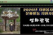 (중앙뉴스타임스 = 방재영 기자) 고양시자원봉사센터는 지난 24일에서 26일까지 3일간 CGV 고양백석점에서 ‘2026년 자원봉사자 문화활동 지원사업’을 성공적으로 개최했다. 이번 사업은 지역사회를 위해 헌신해 온 우수 자원봉사자들에게 감사의 마음을 전하고, 문화예술 체험 기회를 제공해 재충전의 시간을 마련하고자 기획됐다. 사업을 통해 자원봉사 활동의 지속성과 참여 동기를 높이고자 했다. 행사는 총 3회에 걸쳐 진행됐으며, 영화‘왕과 사는 남자’ 상영과 함께 자원봉사자의 노고를 격려했다. 참여 대상은 전년도 기준 100시간 이상 자원봉사 활동을 한 고양시 소속 자원봉사자로 총 888명이 행사에 참여했다. 고양시자원봉사센터 이완범 센터장은 “이번 문화활동을 통해 봉사자를 위로하고 봉사자들의 재충전 시간이 됐기를 바란다”며 “앞으로도 자원봉사자들이 자부심을 가지고 지속적으로 활동할 수 있도록 다양한 지원사업을 확대해 나갈 계획”이라고 밝혔다. 한편, 고양시자원봉사센터는 2026년 문화활동 지원사업을 통해 자원봉사자 1인당 연간 1회 문화 체험 기회를 제공할 계획이며, 향후 일정은 홈페이지를
