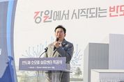 (중앙뉴스타임스 = 방재영 기자) 강원특별자치도는 19일 오후 2시 원주 부론일반산업단지에서 ‘반도체 소모품 실증센터’ 착공식을 개최했다고 밝혔다. 착공식에는 김진태 도지사를 비롯해 나노종합기술원, 한국표준과학연구원, 한국재료연구원 등 주요 연구기관과 ㈜디에스테크노, ㈜보부하이테크 등 반도체 소모품·장비 기업 관계자들이 참석하여 강원형 테스트베드 구축의 첫걸음을 함께했다. 반도체 소모품 실증센터는 산업통상부, 도, 원주시가 공동 추진하고 강원테크노파크가 수행하는 강원권 k-반도체 테스트베드 구축 사업의 핵심 시설이다. 총사업비 472.3억 원 중 국비 150억 원, 도비 125억 원, 시비 152.3억 원이 투입되며, 2027년 준공을 목표로 하고 있다. 센터는 지상 3층, 연면적 2,562㎡ 규모의 2개 동(Fab동,기업지원동)으로 조성되며, ▲ 클린룸 약175평, ▲ 시제품 시험·분석 장비 7종 ▲ 공정안정성 검증 장비(식각,증착) 3종 등 총 10종의 핵심장비를 갖춰 반도체 장비를 구성하는 세라믹등 소모성 부품의 기초 성능 검증과 생산단계의 공정 안정성 검증을 한 곳에서 수행하는 ‘통합(One-Stop) 실증 테스트 베드’ 기능을 수행할 예정이다. 센터
