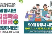 (중앙뉴스타임스 = 방재영 기자) 광명시가 50대 중장년 시민의 배움 기본권 보장을 위해 올해도 평생학습지원금 지원을 이어간다. 시는 오는 3월 3일부터 13일까지 11일간 ‘2026년 광명시민 평생학습지원금’ 신청을 받는다고 26일 밝혔다. 광명시민 평생학습지원금은 생애 전환기를 맞은 50대 시민이 나이·소득·배경과 관계없이 배움을 지속할 수 있도록 생애 1회 1인당 30만 원의 평생학습이용포인트를 지원하는 사업이다. 시민 스스로 자신의 삶과 필요에 맞는 학습을 선택하도록 돕는 것이 핵심 목적이다. 박승원 광명시장은 “배움은 선택이 아닌 누구에게나 보장돼야 할 기본권”이라며 “시민이 나이나 환경의 제약 없이 언제든지 배움을 이어갈 수 있도록 평생학습 기반을 더욱 탄탄히 만들어가겠다”고 밝혔다. 신청 대상은 1967년 1월 1일부터 1976년 12월 31일 사이에 출생한 50대 광명시민이다. 광명시에 1년 이상 계속 거주했거나, 거주기간을 합산해 5년 이상 거주하고 있어야 한다. 시는 총 2천500명을 선정해 지원한다. 59세(1967년생)는 올해가 마지막 지원 대상임을 고려해 우선 선정하고, 1968~1976년생은 무작위 추첨해 대상자를 결정한다. 광명시민
