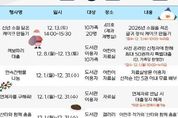 (중앙뉴스타임스 = 방재영 기자) 인천시교육청평생학습관은 12월 송년의 달을 맞아 최대 50권까지 특별 대출이 가능한 ‘책보따리 대출’을 운영한다고 27일 밝혔다. 이번 프로그램은 인천시민을 대상으로 사전 온라인 신청을 받아 진행되며, 신청자는 책장 한 칸(신간코너 제외)을 포함해 전집·시리즈 등 다양한 장르의 도서를 1인당 최대 50권까지 30일간 대출할 수 있다. 대출 기간은 12월 8일부터 13일까지이며, 이용자는 대출 도서를 직접 운반해야 하므로 큰 가방이나 수레 등을 준비해야 한다. 평생학습관 관계자는 “연말을 맞아 어린이들이 책과 함께 따뜻한 시간을 보낼 수 있도록 다양한 배움의 기회를 마련할 계획”이라고 말했다. 자세한 문의는 기획정보부 정보팀에서 가능하다.