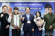 (중앙뉴스타임스 = 이광운 기자) 고양특례시는 27일 오후 2시 시청 대회의실에서 ‘2026 밀라노-코르티나 동계올림픽’ 쇼트트랙 메달리스트인 고양시청 빙상팀 임종언 선수의 성과를 축하하는 환영 기자회견을 개최했다. 이날 기자회견은 단순한 질의응답을 넘어 임종언 선수의 값진 성과를 축하하는 따뜻한 환영의 장으로 꾸며졌다. 특히 임 선수가 올림픽 현장에서 직접 목에 걸었던 은메달과 동메달을 이동환 고양시장에게 직접 걸어주는 특별한 세리머니가 진행됐다. 이는 고양시민의 뜨거운 응원에 보답하고, 시의 전폭적인 지원에 감사를 표하는 의미를 담아 현장에 참석한 관계자들로부터 큰 박수를 받았다. 이동환 시장은 이에 화답하는 의미로 임 선수에게 축하의 꽃목걸이와 꽃다발을 전달하고, 관련 조례와 규정에 따라 성과 포상금 판넬을 수여하며 선수의 노고를 격려했다. 올해 1월 고양시청에 공식 입단한 임종언 선수는 고양시의 대표적 빙상 시설인 ‘고양 어울림누리 빙상장’에서 연습하며 기량을 닦아온 ‘고양의 인재’다. 입단과 동시에 국가대표로서 올림픽에 출전한 그는 남자 1,000m 동메달과 5,000m 계주 은메달을 획득하며, 곽윤기·김아랑 선수 등 대선배들의 뒤를 잇는 고양시청