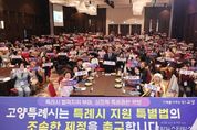 (중앙뉴스타임스 = 방재영 기자) 고양특례시는 지난 30일, 연천군 백학자유로리조트에서 열린 ‘2025년 고양시 주민자치 역량강화 워크숍’에서 ‘특례시 지원에 관한 특별법’의 조속한 제정을 촉구하는 시민참여형 퍼포먼스를 전개했다고 밝혔다. 이 날 행사에는 각 동(洞) 주민자치회 위원, 공직자 등 약 400여 명이 참석했으며, 참석자들은 특례시 지원 특별법 제정의 필요성을 함께 외치며, 특례시의 실질적 권한확보와 특별법 통과를 한마음으로 염원했다. 인구 100만 명 이상을 보유한 특례시는 기초자치단체의 범위를 넘어선 복잡하고 다양한 행정 수요를 감당해 왔다. 그러나 현행 지방자치법은 특례시라는 명칭만을 부여할 뿐, 실질적인 권한 이양이나 행정·재정적 지원은 아직 충분치 않다는 지적이 계속돼 왔다. 시는 특례시에 대한 체계적이고 통합적인 지원을 위해 해당 특별법의 제정을 지속해서 건의해 왔으며, 현재 국회에는 행정안전부가 2024년 12월 제출한 특별법안 1건과 의원발의안 8건이 계류 중이다. 시는 지난 9월부터 44개 동(洞) 행정복지센터에서 특례시 지원 특별법 제정 촉구를 위한 범시민