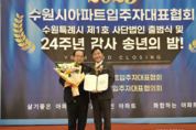 (중앙뉴스타임스 = 방재영 기자) 수원특례시의회 이찬용 도시미래위원장이 지난 9일 수원 노블레스웨딩컨벤션에서 개최된 ‘사단법인 수원시아파트입주자대표협회 출범식 및 송년의 밤’ 행사에서 입주민 권익 증진에 기여한 공로로 표창을 받았다. 이번 수상은 이 위원장이 평소 현장 중심의 의정활동을 통해 공동주택 관리의 투명성을 높이고, 입주민들이 겪는 실질적인 불편 해소에 앞장서 온 점을 인정받아 이루어졌다. 특히 이날 행사는 수원특례시 제1호 사단법인으로 승격된 협회의 공식 출범을 알리는 자리로, 이재훈 협회장 등 400여 명의 내빈이 참석해 새로운 출발을 축하했다. 이찬용 위원장은 수상 소감에서 “입주자대표협회의 사단법인 출범은 수원시 공동주택 관리 수준을 한 단계 높이는 계기가 될 것”이라며 축하를 전했다. 또한 “수원시의회 도시미래위원회 역시 사단법인으로 거듭난 협회와 긴밀히 소통하겠다”면서 “투명한 관리체계 확립과 쾌적한 주거 환경 조성을 통해 시민이 체감할 수 있는 ‘살기 좋은 도시 수원’을 만드는 데 최선을 다하겠다”고 밝혔다.