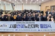 (중앙뉴스타임스 = 이광운 기자) 시흥시는 지난 10일 시흥노인종합복지관 소강당에서 대한노인회 시흥시지회 부설 ‘연꽃노인대학’ 졸업식을 열었다. 이날 졸업식에는 제11기 졸업생 39명과 김연규 대한노인회 시흥시지회 부회장과 김창철 학장, 이선미 시흥시노인복지관장 등이 참석해 그간의 배움을 축하하고 새로운 출발을 응원했다. ‘연꽃노인대학’은 노년층의 건강한 여가생활과 평생교육 실천을 위해 대한노인회 시흥시지회에서 운영하는 프로그램이다. 3월부터 12월까지 9개월간(방학 제외) 매주 1회 노래ㆍ댄스 수업과 연 1회 문화탐방 및 소양 강좌를 진행하며 어르신들의 자기 계발과 교류의 장을 확대해 왔다. 참여도 또한 높아 전체 수강생의 80% 이상이 수료 기준을 충족했다. 올해는 수강생 40명 중 39명이 졸업증서를 받았으며, 올해까지 총 11기에 걸쳐 440여 명의 졸업생을 배출했다. 이날 행사는 학사보고 동영상 시청에 이어 졸업증서 수여, 개근상 시상과 내빈 축사 순으로 이어졌다. 학사과정을 마친 졸업생들은 내빈의 축하 인사와 영예로운 학사모와 졸업장을 받으며 졸업의 기쁨을 만끽했다. 김연규 대한노인회 시흥시지회장은 “연꽃노인대학의 배움을 향한 어르신들의 뜨거운 열