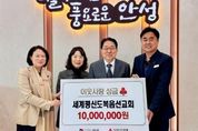 (중앙뉴스타임스 = 방재영 기자) 안성시는 지난 10일 세계평신도복음선교회로부터 현금 1천만원을 지정기부금으로 전달받았다고 밝혔다. 세계평신도복음선교회는 평신도 중심의 복음 전파 및 선교 단체로 국내외 다양한 선교사업과 지역사회 봉사를 활발히 진행하며, 사랑과 나눔의 가치를 실천하는 단체이다. 세계평신도복음선교회 관계자는 “우리 단체가 가진 자원을 지역사회와 나누는 것은 복음적 사명의 실천이며, 앞으로도 지속적인 협력을 통해 더 많은 이웃에게 희망을 전하겠다”고 말했다. 시 관계자는 “세계평신도복음선교회의 따뜻한 나눔과 사랑에 진심으로 감사드리며, 기부금이 꼭 필요한 곳에 투명하고 효율적으로 사용되어 지역사회의 복지 향상에 기여할 수 있도록 최선을 다하겠다”고 전했다. 이번 지정 기부금은 경기사랑의열매를 통해 안성시로 전달되어 아동, 노인, 저소득층 등 도움이 필요한 지역주민을 위한 맞춤형 복지사업에 투명하게 사용될 예정이다.