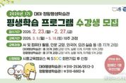 (중앙뉴스타임스 = 방재영 기자) 시흥시 대야ㆍ정왕평생학습관은 오는 23일부터 27일까지 ‘2026년 1기 평생학습 프로그램’ 수강생을 모집한다고 12일 밝혔다. 이번 1기 프로그램은 3월 9일부터 5월 16일까지 10주간 운영된다. 이번 과정은 시민의 다양한 학습 수요와 최신 교육 흐름을 반영해 인문·교양부터 자격증 취득, 실생활 활용 중심의 실용 과정까지 폭넓게 구성됐다. 특히 시흥시가 지향하는 첨단 미래 혁신도시 비전에 맞춰 디지털 및 인공지능(AI) 분야 강좌를 대폭 강화한 것이 특징이다. 주요 강좌로는 ▲생성형 인공지능(AI)과 함께하는 디지털 콘텐츠 제작 ▲챗지피티 활용 과정 ▲인공지능(AI) 전문가 자격증 과정 ▲디지털 드로잉 아티스트 과정 등이 마련돼, 시민들이 급변하는 인공지능(AI) 기반 사회에 필요한 미래 역량을 체계적으로 기를 수 있도록 지원한다. 아울러 시는 누구나 차별 없이 학습할 수 있는 환경 조성을 위해 전 강좌에 ‘장애인 1명 우선 선발제’를 도입했다. 이를 통해 장애·비장애인이 함께하는 통합 학습 환경을 조성하고, 평생학습의 접근성을 한층 강화할 방침이다. 이번 1기 프로그램은 대야평생학습관에서 교양ㆍ실용ㆍ자격증 등 총 35개