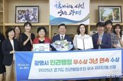 (중앙뉴스타임스 = 방재영 기자) 광명시가 경기도가 선정하는 인권 행정추진 우수 기관으로 3년 연속 선정되며 인권 선도 도시로 확고히 자리매김했다. 시는 지난 9월 30일 경기도청 다산홀에서 열린 ‘2025년 경기인권포럼’에서 경기도 인권 행정추진 우수 자치단체 경기도지사 표창을 받았다. 경기도는 31개 시군을 대상으로 인권행정 제도와 정책 추진 성과를 종합 평가해 5개 우수 자치단체를 선정했으며, 광명시는 평가 제도가 도입된 2023년부터 올해까지 매년 수상하는 성과를 거뒀다. 이번 수상은 ▲인권행정 제도 구축(인권조례제정, 인권위원회 구성 및 운영, 인권교육 실시 등), ▲인권정책 수립(인권기본계획 수립 및 연도별 시행계획 수립, 인권실태조사 및 인권영향평가, 인권문화행사 등) ▲지역사회 인권증진 활동 ▲시민 인권 보장과 존중 문화 확산 등 전반적 성과를 전문가들로부터 인정받은 결과다. 광명시는 2012년 지방자치단체 최초로 ‘광명시민인권센터’를 개소하고, ‘인권보장 및 증진 5개년 기본계획’ 수립하는 등 인권 친화적 행정의 기틀을 마련해 왔다. 특히 인권기본계획에 재개발·재건축이