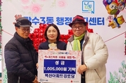 (중앙뉴스타임스 = 방재영 기자) 인천 남동구 만수3동 행정복지센터는 벽산아파트경로당(회장 정기조)으로부터 복지 사각지대 등 취약계층을 위한 성금 100만5000원을 기탁받았다고 11일 밝혔다. 성금은 벽산아파트경로당 회원들이 십시일반으로 모은 40만 원과 정기조 경로당 회장이 따뜻한 나눔을 위해 개인적으로 기탁한 60만 원을 합해 마련됐다. 벽산아파트경로당 정기조 회장은 “어려운 이웃에게 도움이 되길 바라는 마음으로 회원들이 뜻을 모았다”라며 기부의 취지를 전했다. 신희자 동장은 “어르신들께서 보여주신 따뜻한 마음이 지역 사회에 큰 힘이 되고 있다”라며 “후원해 주신 성금은 필요한 곳에 소중히 사용하겠다”라고 말했다. 만수3동 행정복지센터는 전달받은 성금을 복지 사각지대 및 취약계층 지원을 위해 사용할 예정이다.