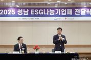 (중앙뉴스타임스 = 방재영 기자) 성남시는 지역사회를 위해 기부를 실천한 20개사에 5일 ‘ESG(환경·사회·지배구조) 나눔기업 인증패’를 전달했다. ESG(환경·사회·지배구조) 나눔기업은 경기사회복지공동모금회를 통해 1000만원 이상을 기부한 기업과 법인을 말한다. 경영 이익금을 지역사회에 환원해 사회적 책임을 다하는 기업·법인 인증에 의미를 둔다. 인증패 전달식은 이날 오후 4시 시청 3층 한누리에서 신상진 성남시장과 김효진 경기사회복지공동모금회 사무처장, 20개사 기업 대표 등이 참석한 가운데 진행됐다. 이날 인증패를 받은 기업·법인은 △NH농협은행 성남시지부 △성남제일새마을금고 △성남동부새마을금고 △삼영전자공업㈜ △㈜엔에스쇼핑 △㈜코원에너지서비스 △미션시스텍㈜ △㈜리워터(옛 에코비트워터) △㈜모백스 △㈜명세아이앤씨 △신구대학교 △㈜디엔에스사회적기업 △㈜더클레르(옛 중원기업) △테크밸리㈜ △㈜삼성환경 △상호통상㈜ △㈜프로켐 △한성산업㈜ △㈜티앤디소프트 △㈜아티타야 등이다. 이들 기업·법인은 지난 한 해 동안 1000만~2억6600만원을 기탁해 총 15억2432만원을 지역사회에 환원했다. 해당 기탁금은 지역 내 저소득층 가정과 사회복지시설에 배분돼 생계·