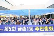 (중앙뉴스타임스 = 이광운 기자) 파주시 금촌1동 주민자치회는 지난 12일 금촌어울림센터에서 녩년 금촌1동 주민총회’를 개최했다. 이번 주민총회는 2025년 자치계획형 사업인 ‘행복마을 다문화 캠프’와 연계해 축제 형식으로 진행됐으며, 김경일 파주시장을 비롯해 지역구 시의원, 금촌1동 유관단체장, 주민자치위원, 지역 주민 등 300여 명이 참석했다. 총회 현장에는 다문화 체험공간 마련되어 즉석에서 다문화에 대한 인식 개선 설문조사도 이루어졌다. 총회 본식은 인공지능(AI)을 활용한 영상으로 시작해 큰 호응을 얻었다. 이어 금촌1동 주민자치회 현황 보고와 2026년 자치계획형 주민참여예산 사업을 설명하고 최종 시행 여부를 의결했다. 이에 앞서 금촌1동 주민자치회는 의제의 공공성과 대표성을 높이기 위해 8월 25일부터 9월 9일까지 온오프라인 사전투표를 진행했으며, 219명의 주민이 투표에 참여했다. 주민 투표를 거쳐 선정된 2026년 자치계획형 사업은 ▲반딧불이야 돌아와 금촌천 살리기 ▲금촌1동 꽃정원 조성 ▲알록달록 다문화 인식개선 캠페인 등 총 3개 사업으로, 내년 주민자치사업으로 추진할 계획이다