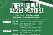 (중앙뉴스타임스 = 방재영 기자) 평택시와 평택시청소년문화센터는 오는 11월 2일 평택시청소년문화센터 청소년체육관에서 개최되는 ‘제3회 평택시 청소년 풋살대회’ 참가팀을 오는 10월 21일까지 모집한다고 밝혔다. 이번 대회는 청소년들에게 건전한 여가 활동을 제공하고, 스포츠를 통한 협동심과 건강한 경쟁 문화를 조성하기 위해 마련됐으며, 평택시에 생활 기반을 두고 있는 2010~2012년생 청소년(5~10인 구성팀, 총 12팀)으로 구성된 팀은 선착순으로 신청이 가능하다. 경기는 5:5 풋살 방식(국제축구연맹(FIFA) 규칙 적용)으로 진행되며, 조별 예선을 거쳐 본선 토너먼트로 우승팀을 가리며, 시상은 ▲우승(평택시청소년문화센터장상) ▲준우승(센터장상) ▲3위(센터장상)로 나뉘어 진행된다. 청소년 풋살대회 담당자는 “풋살을 통해 청소년들이 협동과 배려를 배우고, 건강한 스포츠 문화를 경험할 수 있는 자리가 될 것”이라며 “스포츠를 즐기는 청소년들의 많은 관심과 참여를 바란다”라고 전했다.