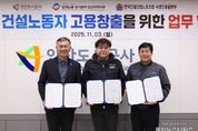 (중앙뉴스타임스 = 방재영 기자) 안산도시공사는 한국노총 경기본부 안산지역지부, 한국건설산업노동조합 서경인총괄본부와 업무협약을 맺었다고 4일 밝혔다. 지난 3일 체결된 이번 협약은 안산도시공사가 참여하는 장상, 의왕·군포·안산 등 3기 신도시 건설사업을 통해 지역 건설노동자에게 양질의 일자리를 제공하고, 지역경제를 활성화하기 위해 마련됐다. 협약에 따라 안산도시공사는 지역 내 건설사업을 적극 발굴·추진하고, 지역 건설노동자의 고용 확대에 기여할 방침이다. 한국노총 안산지부와 한국건설산업노동조합 서경인총괄본부는 건설사업에 필요한 노동력을 안정적으로 공급하고 사업이 원활히 추진될 수 있도록 전방위적으로 협력할 예정이다. 세 기관은 아울러 향후 협약 내용을 기반으로 정기적인 소통과 협력체계를 유지하며, 지역 건설노동자의 근로환경 개선을 위해 적극 협력해 나갈 계획이다. 방운제 한국노총 안산지부 의장은 “이번 협약은 공공기관과 노동계가 함께 손잡고 고용 안정과 지역 상생을 도모하는 좋은 사례가 될 것”이라고 말했다. 이한서 한국건설산업노동조합 서경인총괄본부장 또한 “협약을 통해 건설노동자의 고용 불안과 근로환경의 리스크를 완화하고, 보다 안정적인 일터를 조성할 수