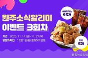 (중앙뉴스타임스 = 방재영 기자) 원주시는 시정 소식부터 행사·축제·복지 정보까지 시민들에게 유용한 정보를 문자 메시지로 알려주는 ‘원주소식알리미’ 서비스를 운영하고 있다. 시는 시민과의 소통을 강화하고 원주소식알리미 서비스를 활성화하기 위해 11월 14일부터 27일까지 구독 이벤트를 진행한다. 행사는 전 국민 누구나 참여할 수 있다. 원주시 홈페이지에서 원주소식알리미 서비스를 신청한 뒤, 이벤트 홈페이지(네이버폼)에 참여 정보를 입력하면 된다. 기존 구독자도 참여 가능하다. 추첨을 통해 총 100명에게 아메리카노(95명)와 치킨(5명) 쿠폰을 증정한다. 당첨자는 12월 1일 시 홈페이지를 통해 발표될 예정이다. 길경화 정보통신과장은 “앞으로 원주소식알리미가 시민들에게 더욱 빠르고 유용한 시정 정보를 제공하는 소통 플랫폼으로 자리매김할 수 있도록 최선을 다하겠다”라고 말했다.
