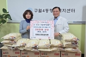 (중앙뉴스타임스 = 방재영 기자) 인천 남동구 구월4동 행정복지센터는 미래신경외과(원장 한재혁)에서 설 명절을 앞두고 취약계층을 위한 온정의 손길을 전했다고 9일 밝혔다. 미래신경외과는 구월4동 행정복지센터에 백미 50포와 라면 30상자 등 200만 원 상당의 물품을 기탁했다. 이번 물품은 구월4동 행정복지센터를 통해 취약계층 80세대에 전달될 예정이다. 한재혁 원장은 “힘든 겨울을 보내고 있는 어려운 이웃들이 조금이라도 넉넉한 명절을 보내길 바라는 마음에서 준비했다”라며 “앞으로도 꾸준히 나눔 활동을 이어가며 지역 주민들과 함께하는 병원이 되겠다”라고 말했다. 구월4동 관계자는 “지난해에 이어 올해도 뜻깊은 나눔을 실천해 주신 미래신경외과에 감사드린다”라고 전했다. 미래신경외과는 2019년 개원 이후 척추·관절·통증 클리닉 전문병원으로 자리매김하며, 구월4동 ‘착한 동네 만들기 캠페인’에 참여하는 등 꾸준한 나눔 활동을 이어가고 있다.