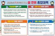 (중앙뉴스타임스 = 방재영 기자) 강원특별자치도는 2월 14일부터 18일까지 5일간 이어지는 설 명절을 맞아 도민과 귀성객, 방문객 모두가 안전하고 즐거운 명절을 보낼 수 있도록 ‘설 연휴 종합대책’을 추진한다. 이번 대책에는 △민생경제 활력 △안전·보건 강화 △관광·복지 제공 △교통·생활 편의 등 4개 핵심 분야 19개 과제가 포함됐다. 도와 시군은 설 연휴 기간 종합상황실(도·시군 3,600여 명)을 운영하여 긴급상황 발생 시 신속히 대응할 계획이다. 먼저 도는 민생경제 활력 제고를 위해 물가 안정과 소비 촉진에 총력을 기울일 예정이다. 2월 3일부터 ‘물가대책 종합상황실’을 운영해 성수품 20개 품목을 중심으로 물가 동향을 집중 관리하고, 바가지요금 근절을 위해 시군별 신고센터 운영과 가격표시제 이행 실태 점검을 실시한다. 또한 도내 63개 전통시장 소비 촉진 캠페인, 강원상품권 발행 확대(40억 원 → 60억 원, 5% 할인), 강원더몰 설맞이 온라인 기획전 등 다양한 할인 행사를 추진한다. 둘째, 도는 연휴 기간 안전한 강원 구현을 위해 24시간 재난안전상황실 운