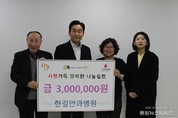 (중앙뉴스타임스 = 방재영 기자) 인천 부평구 부평1동은 지난 8일 부평 한길안과병원으로부터 지역의 어려운 이웃을 돕기 위한 지역복지 성금 300만원을 기탁받았다. 부평 한길안과병원(이사장 정규형)을 대표해 성금을 전달한 박덕영 부평 한길안과병원 행정부원장은 “지역사회와 함께 나누면서 성장하는 것이 병원의 덕목”이라며 “작은 정성이지만 도움이 필요한 이웃들에게 따듯한 위로가 되길 바란다”고 밝혔다. 유혜형 부평1동장은 “매년 이웃사랑을 실천해 주신 부평 한길안과병원에 감사하다”며, “전달받은 성금은 지역사회 내 꼭 필요한 곳에 소중히 사용하겠다”고 말했다. 부평 한길안과병원은 매년 부평1동 주민을 위해 성금을 기탁하고 있으며, 지역 내 어려운 이웃을 위한 후원 활동을 통해 꾸준한 나눔을 실천하고 있다.