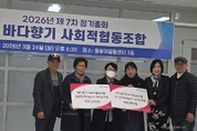 (중앙뉴스타임스 = 방재영 기자) 바다향기사회적협동조합이 지역 아동을 위한 나눔 활동에 나섰다. 바다향기사회적협동조합(이사장 김보식)은 지난 24일 시흥시1%복지재단(이사장 성낙헌)에 후원금 100만 원을 전달했다고 밝혔다. 이번 후원금은 조합의 제7회 정기총회를 계기로 마련된 것으로, 나드림지역아동센터와 솔로몬지역아동센터에 각각 50만 원씩 지정 전달될 예정이다. 바다향기사회적협동조합은 하천 관리와 불법 광고물 정비 등 다양한 사업을 통해 지역사회 일자리 창출에 기여하고 있으며, 꾸준한 사회공헌 활동으로 지역 내 나눔 문화 확산에 앞장서고 있다. 김보식 이사장은 “나눔은 금액의 크기를 떠나 함께 살아가는 지역사회를 위한 중요한 실천”이라며 “이번 후원이 아이들에게 작은 희망과 응원이 되길 바라고, 앞으로도 지속적인 나눔 활동을 이어가겠다”고 말했다. 이에 시흥시1%복지재단 천숙향 사무국장은 “매년 변함없이 지역 아동들을 위해 따뜻한 나눔을 실천해주셔서 감사드린다”며 “전해주신 후원금은 지정된 곳에 소중히 전달하겠다”고 밝혔다. 한편 시흥시1%복지재단은 시흥시청 1층 민원여권과 앞에 ‘나눔 키오스크’를 설치해 신용카드와 모바일 결제로 기부할 수 있도록 하고