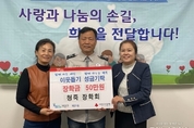 (중앙뉴스타임스 = 방재영 기자) 인천 계양구 계양1동 새마을지도자협의회(대표 서영성)은 11일 취약계층 지원을 위한 쌀(10kg) 40포를 계양1동에 전달했다. 이번 기부는 지난해에 이어 두 번째로, 지역 사회 나눔 문화 확산에 기여하고 있다. 기부된 쌀은 인천광역시 사회복지복지공동모금회를 통해 복지사각지대 대상자와 취약계층 가정에 전달될 예정이다. 계양1동 새마을지도자협의회는 이날 기탁한 성품 외에도 매년 지역 내 소외계층을 위해 지속적인 나눔 활동을 이어오고 있다. 서영성 회장은 “작은 나눔이 지역사회를 따뜻하게 만드는 힘이 되길 바란다.”라며 성품 전달의 소감을 전했다. 이에 박미라 계양1동장은“새마을지도자협의회의 꾸준한 후원이 어려운 이웃에게 큰 힘이 된다”라며 “기탁해 주신 성품은 뜻에 따라 도움이 필요한 이웃들에게 잘 전달하겠다”라고 감사의 뜻을 전했다.