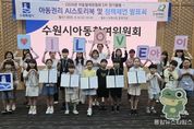 (중앙뉴스타임스 = 방재영 기자) 수원시 아동참여위원회는 6일 시청 중회의실에서 ‘아동 권리 AI 스토리북 및 정책제언 발표회’를 열고, ‘건강권’을 주제로 제작한 AI(인공지능) 스토리북과 정책 아이디어를 발표했다. 이날 회의에는 아동 위원, 멘토 대학생·대학원생 등 50여 명이 참여했다. AI 스토리북은 아이들이 생각하는 아동 권리 이야기에 AI 기술을 활용해 영상과 소리를 더한 동화책이다. 아동참여위원회는 지난 5월부터 3회에 걸쳐 5개 조로 나눠 ▲스마트폰 과의존 ▲마음 건강 ▲안전한 놀이공간 ▲신체활동 ▲아동 비만 예방 등 5개 ‘건강권’을 주제로 ‘AI 스토리북을 제작했다. 이날 AI스토리북과 조별 토론을 거쳐 도출한 문제점과 개선 방안을 담은 정책제언을 발표했다. 주요 제언은 ▲학교 급식 예산 증액, 품질 향상 ▲14세 미만 학원 22시 제한 ▲놀이터 옆 자전거 설치 공간 마련 ▲실내 놀이터 설치 ▲온도 조절 장치를 설치한 놀이터 조성 ▲휴식 공간과 안전 요원을 설치한 놀이터 조성 ▲놀이중심수업 도입 ▲과정 중심 평가 확대 ▲스마트폰 없이 놀 수 있는 시간과 방법 보장 ▲불건전한 콘텐츠의 무방비한 노출 방지 등이 제시됐다. 수원시는 우수작으로 선