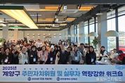 (중앙뉴스타임스 = 방재영 기자) 인천 계양구는 지난 4일 화개정원 등 강화군 일원에서 주민자치위원 및 실무자 100여 명이 참여한 가운데 ‘2025년 주민자치위원 및 실무자 역량 강화 워크숍’을 성황리에 개최했다. 계양구 주민자치회는 ▲지역 의제 발굴 ▲주민총회 운영 ▲주민참여 확대 ▲공동체 활성화 ▲주민자치센터 프로그램 운영 ▲지역 네트워크 구축 등 지역의 문제를 주민 스스로 찾아 해결하는 핵심 기반 조직으로서 중요한 역할을 수행하고 있다. 이번 워크숍은 현지 탐방 프로그램을 통해 동별 위원들이 서로 교류하며 화합하는 시간으로 마련됐다. 특히 ‘주민자치 지속 가능발전을 위한 집담회’ 특강에서는 주민자치회의 미래 역할과 운영 방향에 대해 논의하는 시간을 가졌다. 윤환 구청장은 “주민 스스로 지역의 미래를 만들어가는 것이 진정한 자치이며, 큰 역할을 감당하고 있는 주민자치위원 및 실무자 여러분께 감사드린다.”라며, “오늘 워크숍이 주민자치위원의 역량을 강화하고 재충전의 시간이 되길 바란다.”라고 전했다. 민종상 주민자치협의회장은 “워크숍을 통해 동 간 소통과 협력이 더욱 강화되길 기대하며, 주민자치회가 마을 변화의 중심이 될 수 있도록 함께 노력하겠다.”라고