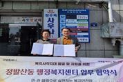 (중앙뉴스타임스 = 방재영 기자) 고양특례시 정발산동은 지역 내 복지사각지대 발굴과 촘촘한 복지안전망 구축을 위해 지난 24일 생활밀착형 업종 종사자들과 업무협약(MOU)을 체결했다. 이번 협약은 위기가구를 조기에 발견하고 신속하게 지원하기 위해 마련됐으며, 지역 내 사우나, 미용실 등 주민 생활과 밀접한 업종이 참여했다. 해당 업종 종사자들은 영업활동 중 위기 상황이 의심되는 주민을 발견할 경우 행정복지센터에 제보하는 역할을 수행한다. 정발산동은 접수된 정보를 바탕으로 대상 가구의 상황을 신속히 확인해 긴급복지 지원, 민간자원 연계 등 맞춤형 복지서비스를 제공할 계획이다. 협약식에서 참여 업종 대표들은 협약서에 서명하고 복지사각지대 발굴을 위한 협력 의지를 다졌다. 참여자들을 대상으로 위기가구 식별 방법 및 신고 절차에 대한 간단한 교육도 진행됐다. 안수길 정발산동장은 “지역 주민이 일상생활에서 흔히 접하는 업종 종사자들의 역할이 중요하다”며 “이번 협약을 통해 도움이 필요한 이웃을 빠르게 발견하고 지원할 것으로 기대한다”고 말했다. 한편, 정발산동은 앞으로 더 많은 업종