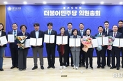 (중앙뉴스타임스 = 방재영 기자) 경기도의회 더불어민주당(대표의원 최종현, 수원7)은 18일 경기도의회 대회의실에서 열린 의원총회 직후 ‘2025 더불어민주당 올해의 의원상’ 시상식을 개최했다. ‘2025년 올해의 의원상’은 교섭단체 더불어민주당 의원 중 적극적인 의정활동을 통해 교섭단체 더불어민주당의 역할과 위상을 제고시킨 의원을 발굴하여 치하하기 위해 제정됐다. 더불어민주당은 2020년부터 ‘올해의 의원상 시상식’을 매년 개최하고 있으며, 올해로 6회째 맞이하고 있다. 더불어민주당은 13개 상임위원회에서 올 한 해 뛰어난 의정활동을 펼쳐 두각을 나타낸 더불어민주당 소속 의원 추천받아 14명의 수상자를 선정했다. 각 상임위별로 행정사무감사 및 예·결산 심의에 성실한 참여로 교섭단체에 기여도가 높은 의원과 교섭단체 정책실현을 위한 적극적인 의정활동으로 교섭단체의 역할 및 위상을 제고시킨 의원을 평가하여 추천 기준을 정하였다. 최종현 대표의원은 “올 한 해 더불어민주당이 도민의 희망을 만들고, 삶을 지켜나갈 수 있었던 것은 의원님들의 뛰어난 의정활동 덕분이다”면서 “앞으로도 의원님들이 최대한 역량을 발휘하여 도민의 삶을 변화시키고, 경기도의 발전을 이끌어 갈