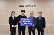(중앙뉴스타임스 = 방재영 기자) 최근 강원학사를 졸업한 윤재영 숙우(25세)가 후배 인재 육성을 위한 기부금 200만 원을 강원인재원에 기탁했다. 기부자인 윤재영 숙우는 2018년 강원학사에 입사하여 재사생 대표인 자치회장은 물론 숭실대학교 총학생회장을 역임했으며, 금년 2월 학사졸업과 함께 글로벌 핀테크 기업 '비바리퍼블리카 토스'에 입사했다. 윤재영 숙우는 “강원학사는 대학시절의 든든한 울타리이자, 선후배들을 만난 고마운 공간이었다”며, “이번 기부는 그 감사한 마음을 후배들에게 나누고자 한 것으로, 사회생활을 시작하며 받은 첫 월급부터 조금씩 모아온 정성을 보태게 됐다”고 밝혔다. 이어 “저 또한 숙우회 선배님들의 발자취를 이어 지역과 함께 성장하는 자랑스러운 강원인재가 되겠다”고 포부를 전했다. 김학철 원장은 “이번 기부는 명예의 전당에 이름을 올린 최연소 기부자이자, 사회에 첫발을 내딛은 사회초년생의 기부라는 점에서 의미가 크다”며, “지난 3월 조윤영 숙우의 기부를 시작으로 청년 숙우들의 후원이 꾸준히 이어지고 있으며, 이러한 지역과 후배를 향한 보은의 마음이 강원학사의 새로운 100년을 이끌어 갈 성장동력이 되기를 기대한다”고 말했다. 한편 강