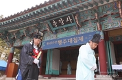 (중앙뉴스타임스 = 이광운 기자) 고양특례시는 임진왜란 3대 대첩 중 하나인 행주대첩 승전 제433주년을 맞아 지난 14일 행주산성 충장사에서 ‘제433주년 행주대첩제’를 엄숙히 봉행했다. 이번 행사는 임진왜란 당시 민관군과 부녀자가 합심해 국난을 극복했던 행주대첩의 역사적 가치를 재조명하고, 충장공 권율 도원수를 비롯한 호국영령들의 위업과 희생정신을 계승하기 위해 마련됐다. 특히 올해 행주대첩제는 주말인 토요일에 개최돼, 평년보다 많은 시민과 관광객이 행주산성을 찾았다. 충장사 일대를 가득 메운 방문객들은 전통 제례 의식을 지켜보며 호국정신의 의미를 되새겼다. 이날 제례는 고양문화원이 주관했으며 이동환 고양시장, 고양특례시의회 부의장, 고양문화원장이 헌관으로 참여했다. 초헌관은 이동환 고양특례시장, 아헌관은 신현철 고양특례시의회 부의장, 종헌관은 이봉운 고양문화원장이 맡아 정성을 다해 잔을 올리며 영령들이 남긴 고귀한 업적을 기렸다. 이날 행사는 △행사 안내 △개식 △국민의례 △행주대첩제 봉행(전향례, 초헌례, 아헌례, 종헌례, 음복례, 망료례) △분향 및 기념 촬영 순으로 약 1시간