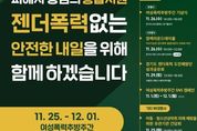 (중앙뉴스타임스 = 이광운 기자) 경기도와 경기도여성가족재단 젠더폭력통합대응단은 여성폭력추방주간(11월 25일~12월 1일)을 맞아 도민과 함께하는 다양한 행사를 추진한다고 13일 밝혔다. 여성폭력추방주간은 유엔(UN)이 제정한 ‘세계 여성폭력 추방의 날’(11월 25일)을 기념하기 위해 마련된 기간으로, 폭력 없는 사회 실현과 피해자 보호의 중요성을 되새기기 위한 뜻깊은 주간이다. ‘피해자 중심의 통합지원, 젠더폭력 없는 안전한 내일을 위해 함께 하겠습니다’라는 표어 아래 도와 대응단은 도내 대학 인권센터 종사자 역량강화 워크숍(11월 6일)에 이어 ▲도민 대상 젠더폭력 예방교육(11월 3일~12일) ▲아동·청소년 성착취 피해 대응 간담회(11월 25일) ▲도민예방단 성과공유회(11월 29일) ▲아동·청소년 성착취 피해예방을 위한 오프라인 아웃리치(거리상담)(12월 1일) 등 현장 중심의 프로그램을 연이어 추진한다. 또한 11월 한 달간 ‘젠더폭력 없는 내일을 위한 1,000인 희망 챌린지’ 누리소통망(SNS) 캠페인을 진행하고 있으며, 도내 각 기관이 추진하는 주요 행사를 한눈에 볼 수 있는 ‘경기도 여성폭