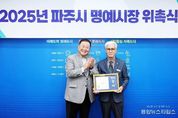 (중앙뉴스타임스 = 방재영 기자) 파주시는 광복 80주년을 맞아 오대건 광복회 위원을 일일명예시장으로 위촉하고, 광복의 의미를 되새길 수 있는 뜻깊은 일정을 진행했다. 오대건 명예시장은 김경일 파주시장으로부터 위촉장을 받은 후 파주시 보훈회관에서 주요업무보고를 받았다. 이어 파주독립광탄공원을 방문해 지역 독립운동의 발자취를 살폈다. 국립민속박물관에서 광복 80주년 기념 영상 ‘되찾은 빛, 이어질 노래 아리랑’ 특별전시를 관람한 뒤, 마지막 방문지인 오두산 통일전망대를 찾아 한반도의 분단 현실과 평화의 소중함을 되새기는 시간을 가졌다. 이번 일정은 광복의 의미가 독립을 넘어 평화와 통일의 희망으로 이어져야 한다는 뜻을 전하는 자리였다. 오대건 명예시장은 “광복 80주년을 맞아 조국의 자유와 독립을 위해 헌신하신 선열들의 숭고한 희생을 다시 한번 깊이 되새길 수 있어 매우 뜻깊은 시간이었다”라며 “광복회 위원으로서 국가유공자와 보훈가족에 대한 예우와 지원에 힘쓰고, 보훈 정신을 계승하는 데 최선을 다하겠다”라고 소감을 밝혔다. 김경일 파주시장은 “독립운동가 후손을 명예시장으로 모시게 되어 매우 뜻깊게