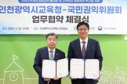 (중앙뉴스타임스 = 방재영 기자) 인천시교육청은 지난 30일 국민권익위원회와 청렴한 미래인재 양성과 교육 현장의 청렴 문화 확산을 위한 업무협약을 체결했다. 이번 협약은 미래세대가 청렴의 가치를 자연스럽게 체득하고 교육 현장 전반에 청렴 문화를 내재화하기 위해 마련됐다. 주요 협약 내용은 ▲초·중·고 학생 대상 청렴교육 활성화를 위한 제도개선 과제 발굴 ▲학생 눈높이에 맞는 청렴교육 콘텐츠 개발 및 활용 ▲교육재정 운영의 건전성 제고를 위한 부정수급 예방과 관리 강화 ▲부패 취약 분야 개선을 위한 공동 노력 등이다. 도성훈 교육감은 “이번 협약이 단순한 제도적 약속을 넘어 미래세대와 교육공동체 전반의 청렴 문화를 획기적으로 확산시키는 출발점이 되기를 기대한다”며 “누구도 소외되지 않고 모두가 공정한 기회를 누리는 학교, 다양성을 존중하며 투명하게 운영되는 교육환경을 조성하는 데 최선을 다하겠다”고 말했다.