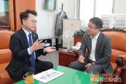 (중앙뉴스타임스 = 방재영 기자) 육동한 춘천시장이 21일 국회를 찾아 한병도 국회 예산결산특별위원회 위원장을 면담하고 내년도 국비 예산 증액과 주요 현안 반영 설득에 나섰다. 육동한 시장은 이날 한병도 국회 예산결산특별위원장을 만나 춘천지역의 주요 현안 사업의 추진 상황을 직접 설명하고 국회 차원의 지원을 요청했다. 육동한 시장은 앞서 지난 3일에도 예결특위 소속 의원들을 만나 주요 사업의 타당성을 설명했다. 국회 예산안 심사가 막바지에 접어든 가운데 춘천시는 이번 한병도 위원장과의 면담을 통해 기존 반영된 예산을 사수하는 한편 추가적으로 주요 사업의 국비를 지속 확보한다는 계획이다. 주요 건의 사업은 △연구개발특구 육성 96억 원 △소양8교 건설 설계비 35억 원 △2026 세계태권도품새선수권대회 지원 15억 원 △2026 춘천코리아오픈국제태권도대회 지원 3억 원 △춘천시 순환형 매립시설 정비 구축 용역비 10억 원 △디지털 랩온어칩 실용화 플랫폼 구축 23억 원 △중소형 CDMO 육성 항원 항체 소재뱅크 구축 23억 원 △동물대체시험 실증지원센터 구축 17억 원 △AI기반 당뇨병콩팥병 바이오마커 개발사업 42억 원 등 총 9개 사업 264억 원이다. 이