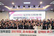 (중앙뉴스타임스 = 방재영 기자) 강원특별자치도 범국민추진협의회(협의회장 최양희, 추진단장 김천수)가 11월 21일 11시, 춘천 스카이컨벤션 2층 컨벤션홀에서 강원특별법 3차개정 조속 통과 촉구 결의대회를 개최했다. 당초 정기총회를 개최할 예정이었으나 어제(11월 20일) 국회 행정안전위원회 법안소위에서 강원특별법 3차 개정이 논의가 불발되자 긴급 행동에 나섰다. 이날 결의대회에는 범추협 위원들을 비롯해 고문직을 맡고 있는 김진태 도지사, 김시성 도의회 의장 등 200여 명이 참석하여 조속 통과를 촉구하는 목소리를 높였다. 최양희 협의회장은 “오늘은 강원특별자치도의 성과를 함께 축하하는 날이 돼야 했지만, 어제 행안위에서 3차 개정을 또 미루는 바람에 오히려 우리의 결의를 더 크게 보여줘야 하는 날이 됐다”라며, “각 지역에서 올라오신 위원 여러분의 지혜와 네트워크가 어느 때보다 절실하다”라고 말했다. 김진태 강원특별자치도지사는 “3차 개정안이 처음 국회에 올라간 게 작년 9월인데, 1년이 넘도록 단 한 번도 심사를 하지 않았다”라며, “5극 3특을 강조하면서 특별자치도 법은 시간이 없다고 국회 심사가