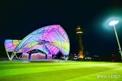 (중앙뉴스타임스 = 방재영 기자) 속초시가 엑스포 잔디광장에 지역의 특색을 담은 품격 있는 문화·힐링 공간이 될 공연시설 조성을 완료했다. 이번 공연시설 조성에는 도비 2억 1천만 원 등을 포함해 총사업비 14억 3천만 원이 투입돼 기존의 야외무대를 아름답고 특색 있는 시설로 재탄생시켰다. 설악산 단풍잎과 속초시 시조인 비둘기를 형상화한 특수제작비닐(ETFE) 재질의 비가림 막구조는 오페라 하우스를 연상시키는 웅장한 분위기를 더한다. 특히, 빛을 머금는 특수제작비닐의 특성이 만들어내는 야간경관은 국화전이 한창인 청초호유원지와 어우러져 가을 야경의 아름다움을 한층 돋보이게 했다. 설악문화제 등의 행사에 시범적으로 운영하며 시설 전반을 자세히 점검하고, 필요한 보완 사항을 모두 조치해 최종적으로 조성을 완료했다. 이번 공연시설은 야외무대를 단순한 공연장 기능을 넘어 시민들이 일상적으로 이용할 수 있는 열린 힐링·휴식 공간으로 조성하는 데 중점을 뒀다. 설악산의 역동적인 산세를 표현한 배경 구조물은 지면과 자연스럽게 연결돼 시민 누구나 편하게 무대를 오갈 수 있도록 했으며, 인조잔디와 데크벤치 등 휴게시설을 설치해 평상시에는 도심 속 쉼터로 활용할 수 있도록 했다