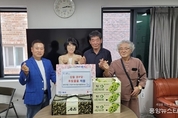 (중앙뉴스타임스 = 방재영 기자) 인천 남동구 간석1동 새마을협의회(회장 최종규)와 부녀회(회장 최재경)는 추석을 맞아 1단1로 결연을 맺은 금호아파트 경로당과 현대홈타운아파트 경로당을 방문해 두유와 김 등 후원품을 전달했다고 30일 전했다. 새마을협의회 최종규 회장은 “회원들과 함께 건강에 좋은 두유와 김을 준비했다”라며 “어르신들께서 맛있게 드시고 풍성한 추석을 보내시길 바란다”라고 말했다. 새마을부녀회 최재경 회장은 “경로당 어르신들께서 항상 건강하시고 올 추석도 가족분들과 함께 즐겁게 보내시길 바란다”라고 말했다. 정연순 금호아파트 경로당 회장은 “이렇게 많은 분들이 경로당을 찾아와주시고 푸짐한 선물까지 챙겨주신 덕분에 어르신들께서 정말 좋아하신다”라며 감사의 인사를 전했다.